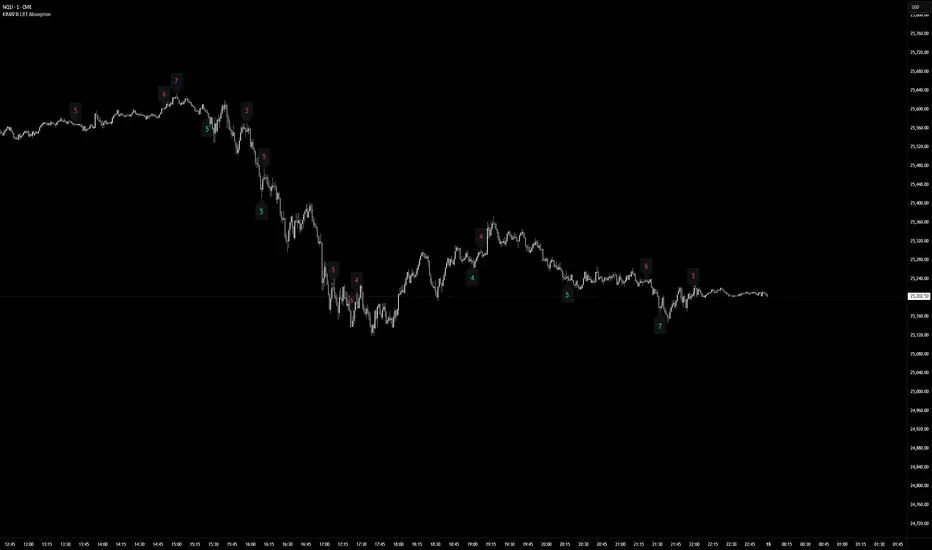 This indicator highlights absorption intensity directly on the chart using numeric sigma values only.