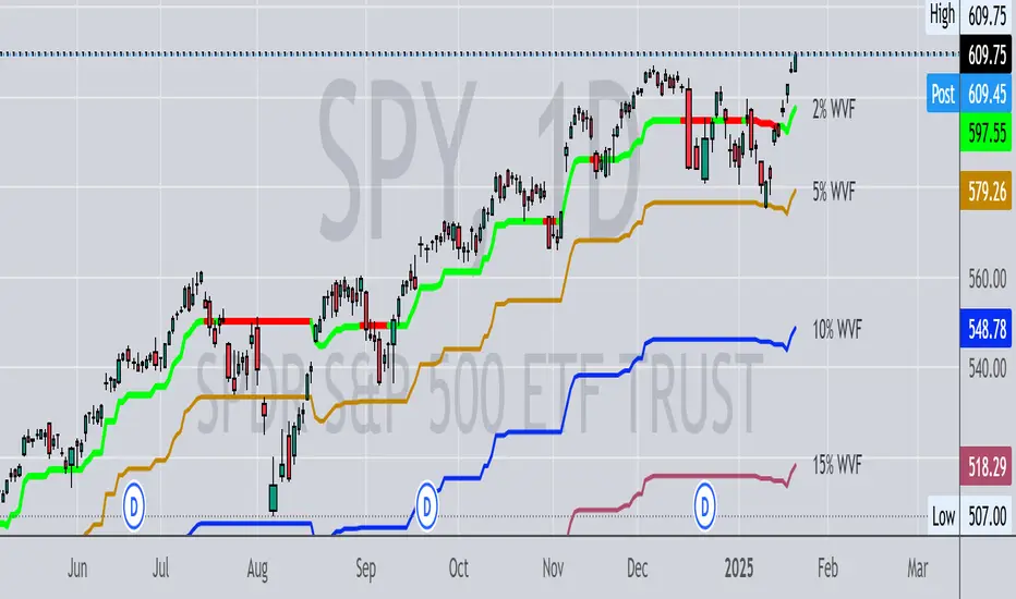 Volatility Monitoring: Use the WVF-based drawdown levels to gauge market volatility.