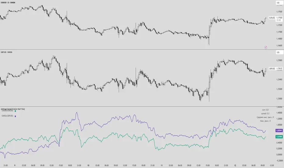 This indicator analyzes the spread and correlation between two selected instruments or currency pairs.
