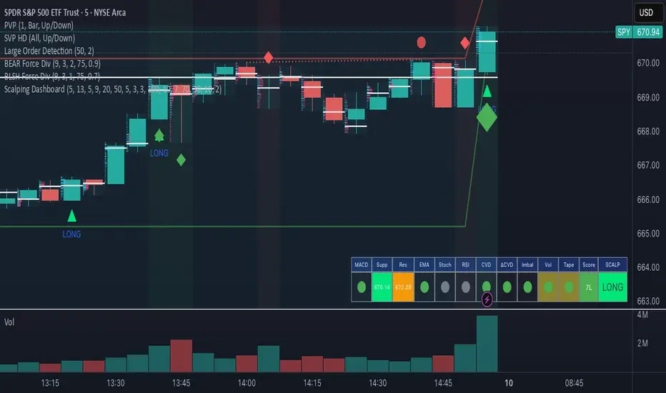 This scalping system consists of two complementary TradingView indicators designed for intraday trading with no overnight holds: