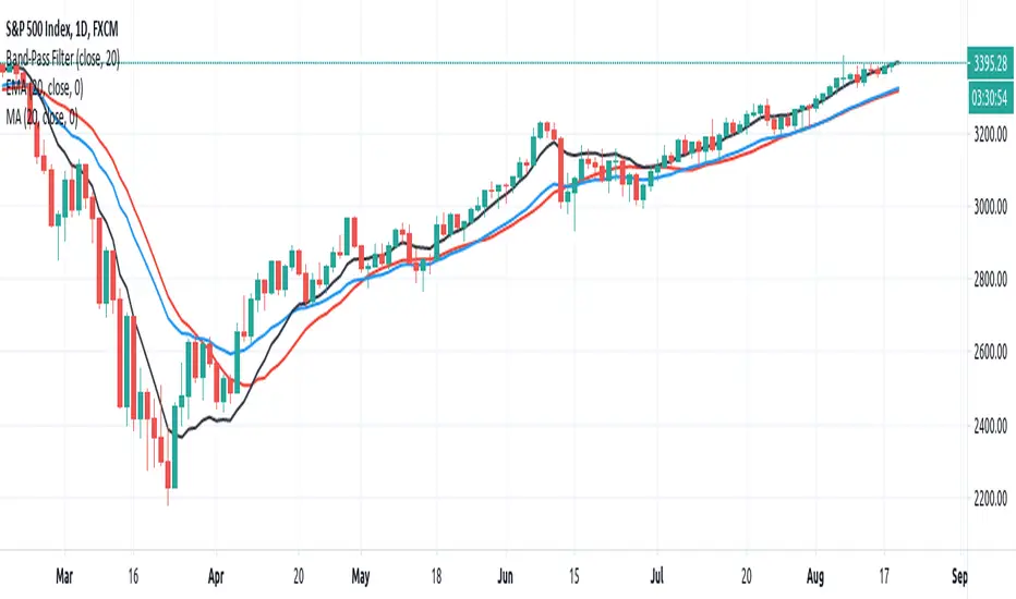 I like to use this filter in place of other MAs in Pine Scripts to smooth my data. So instead of doing something like sma(stochastic,5) I can easily plug in bp(stochastic,5). It works just fine for your primary moving averages against price as well.