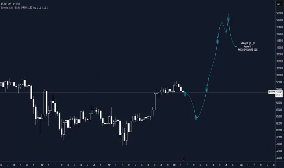 The ARIMA (Autoregressive Integrated Moving Average) and SARIMA (Seasonal ARIMA) are advanced statistical models that use machine learning to forecast future price movements. It uses autoregression to find the relationship between observed data and its lagged observations. The data is differenced to make it more predictable. The MA component creates a dependency between observations and residual errors. The parameters are automatically adjusted to market conditions.