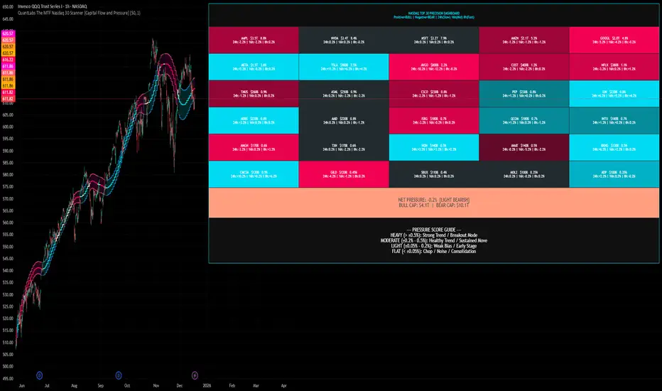 The QuantLabs MTF Nasdaq 30 Scanner [Capital Flow and Pressure] is not just a trend indicator, it is a professional-grade Market Dashboard that visualizes the heartbeat of the entire Nasdaq 100.