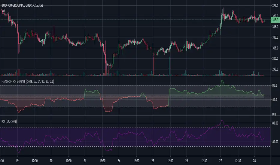 This indicator estimates the buy and sell volume of each candle by using a configurable lower time-frame and uses the buy and sell volume in the calculation of the RSI Volume (VoRSI)