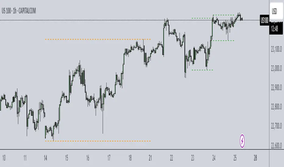 This Pine Script indicator displays key support and resistance levels by plotting the highs and lows from Daily, Weekly, and Monthly timeframes on your current chart. It's designed as an educational tool to help traders understand multi-timeframe analysis and identify significant price levels.