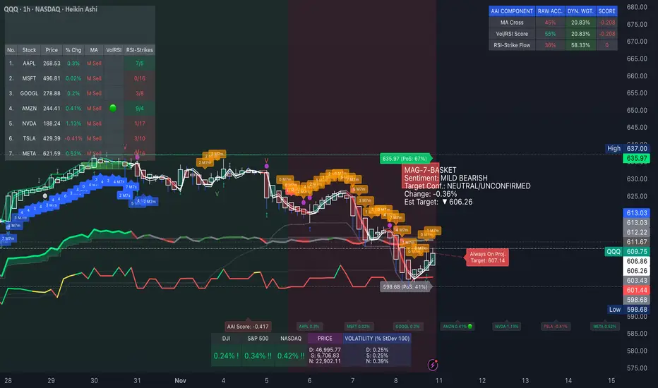 High Weight: When trading one of the Mag 7 stocks that is highly sensitive to the overall basket flow. This ensures signals fire with high conviction only when the leadership stocks are aligned.