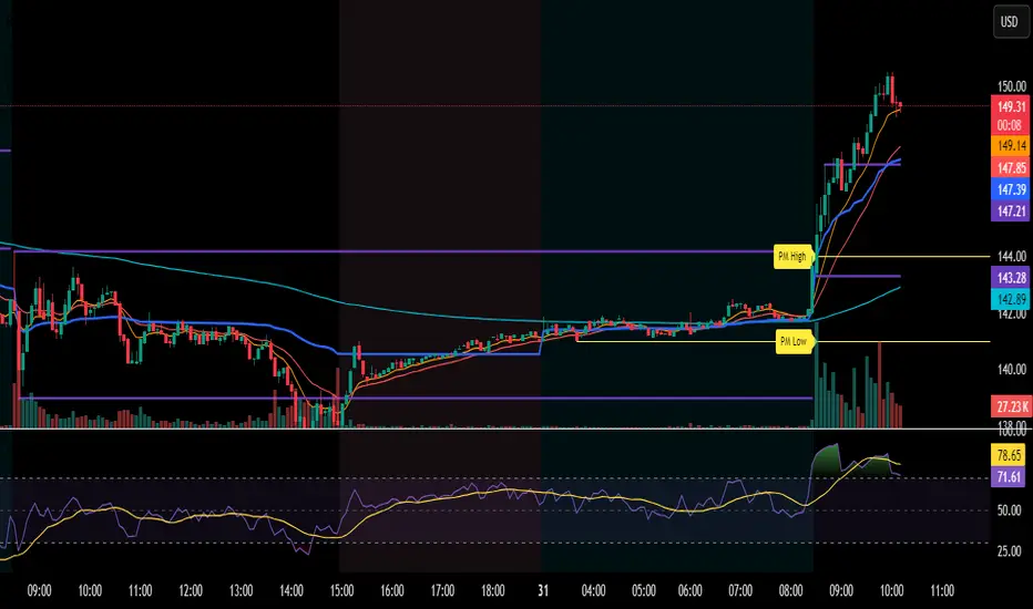 Script that combines EMA and opening range and Premarket high and low levels all in one so you can save using three indicators and just use this one.