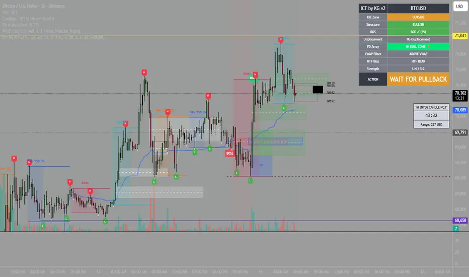 **ICT by KG** is a sophisticated Pine Script indicator that automates core ICT concepts, providing clear entry signals based on market structure, displacement, and premium/discount arrays.