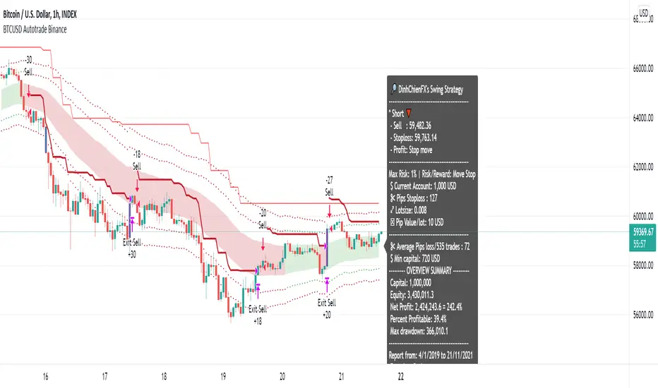 - SELL when previous OHLC4 candle crossunder Basis line AND Supertrend H4 downtrend AND Keltner channels downtrend. Not repaint.