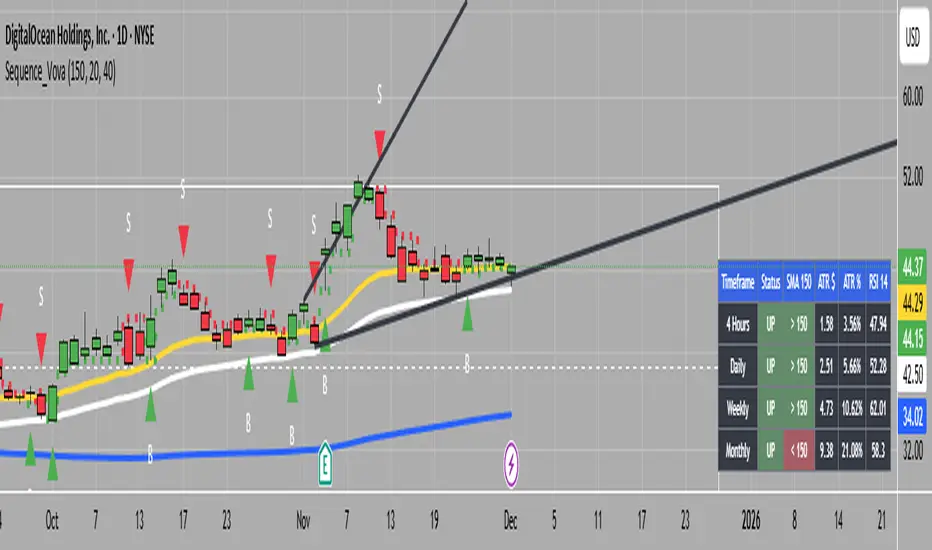 Integrated Market Scanner (Top 40): Features a built-in dashboard panel that monitors the Sequence Status (Up/Down/Signal) for the Top 40 US Stocks in real-time directly on your chart.