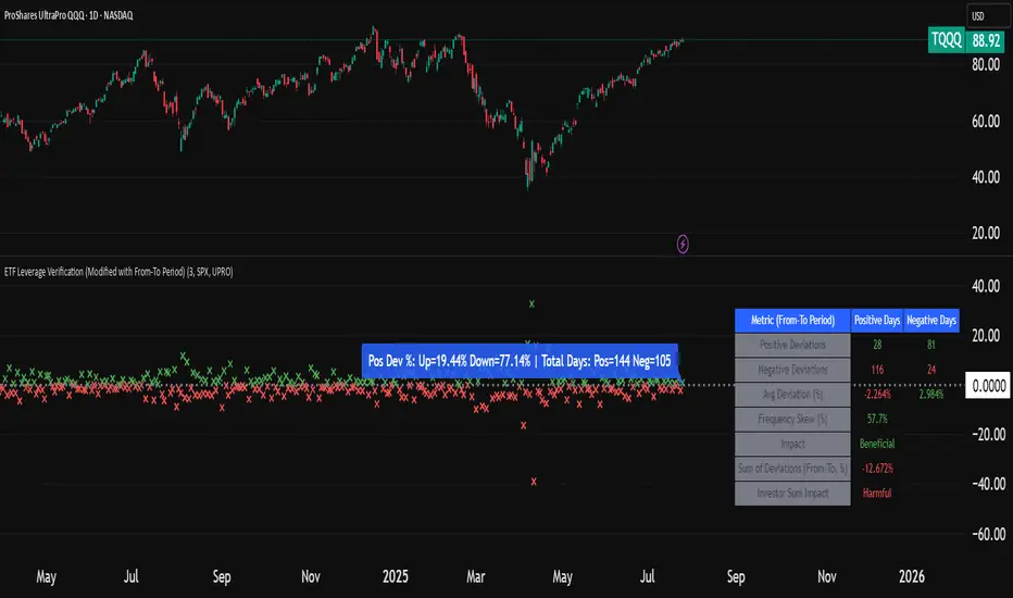 Instead of assuming leveraged ETFs perfectly track their target multiple, this indicator quantifies the real-world behavior by comparing the expected returns versus the actual results on every trading day.