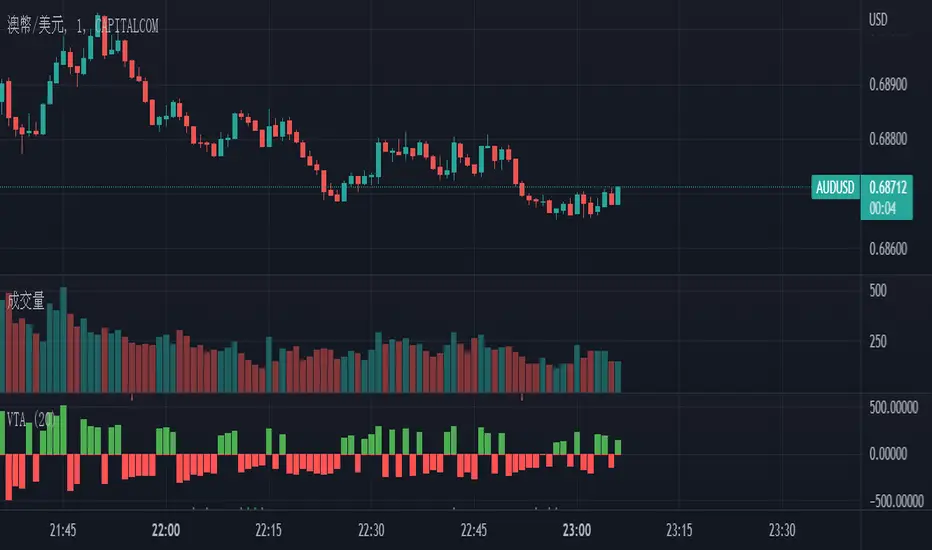 The VTA indicator is a trend analysis indicator based on trading volume and candlestick charts, used to determine the states of bullish strength, bearish strength, and market balance. When the bullish volume gradually increases while the bearish volume gradually decreases or remains steady, the market is in a state of bullish strength; when the bearish volume gradually increases while the bullish volume gradually decreases or remains steady, the market is in a state of bearish strength; when both the bullish and bearish volumes remain steady, the market is in a state of market balance.