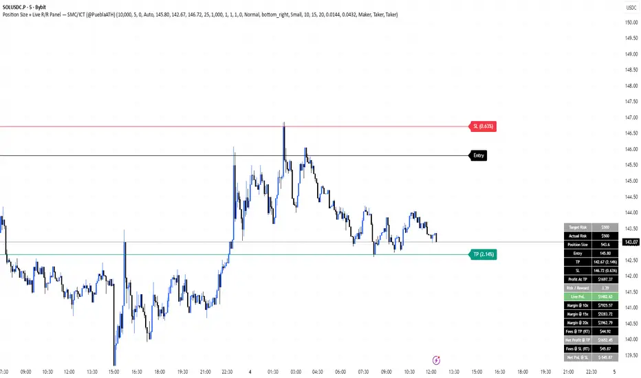 Position Size + Live R/R Panel — SMC/ICT (PueblaATH) is a professional-grade risk management and execution module built for Smart Money Concepts (SMC) and ICT Traders who require accurate, repeatable, institution-style trade planning.
