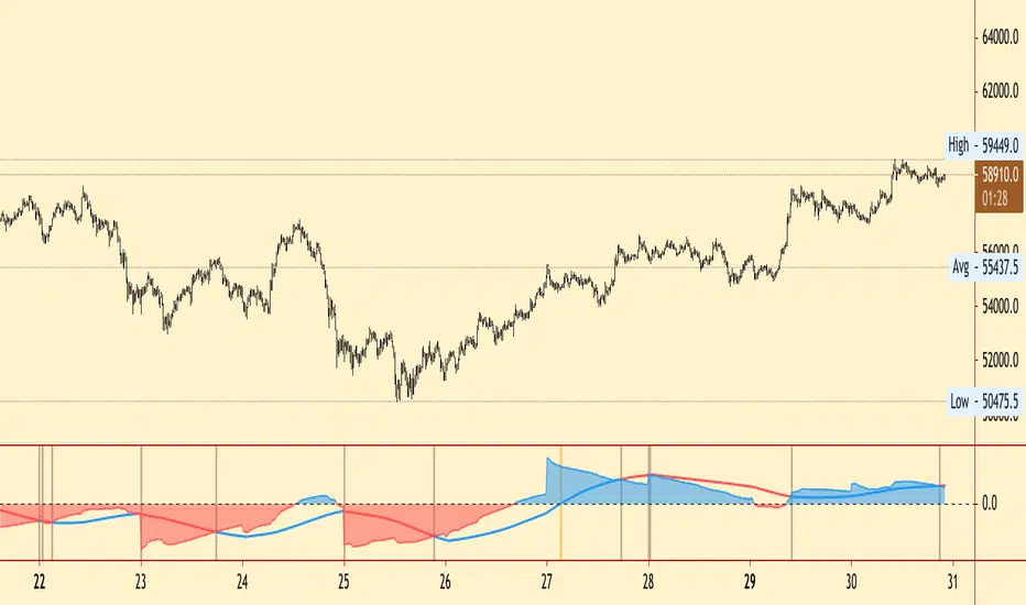 On top of that is a Moving Average of the histogram value, shown as a blue / red line with an option to hight these crossing and also crossing zero