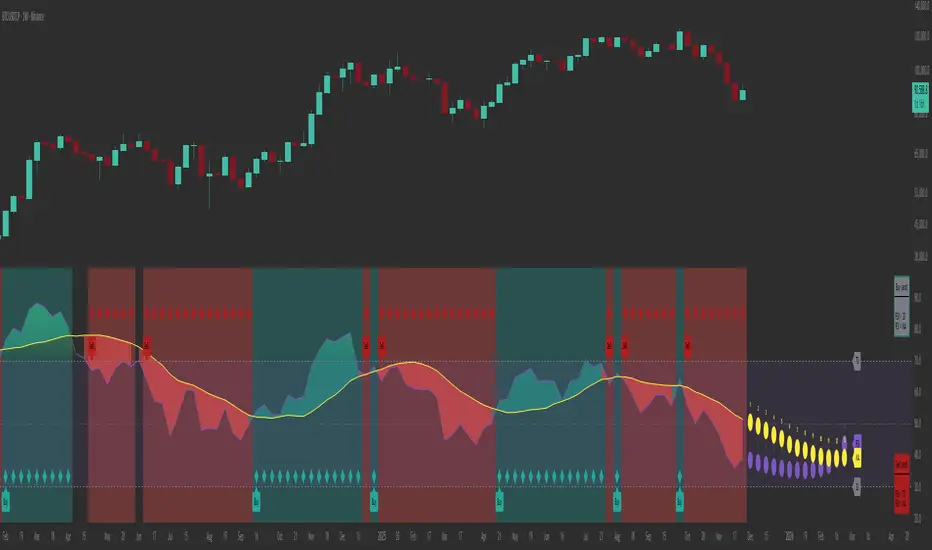 Introducing one of the most complete RSI indicators available — a highly customizable analytical tool that integrates advanced prediction capabilities. RSI Forecast Colorful is an evolution of the classic RSI, designed to anticipate potential future RSI movements using linear regression. Instead of simply reacting to historical data, this indicator provides a statistical projection of the RSI’s future behavior, offering a forward-looking view of market conditions.