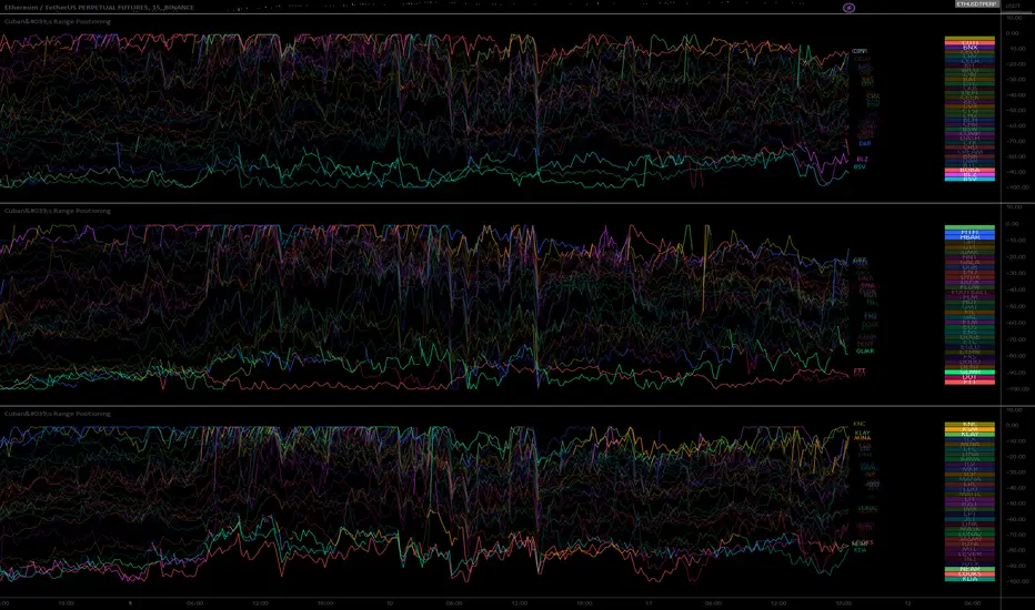 Range Positioning allows the trader to monitor the positioning of over 200+ Binance and Bybit Futures assets within a single window, with a standard measurement of performance, and also with custom watchlist support.
