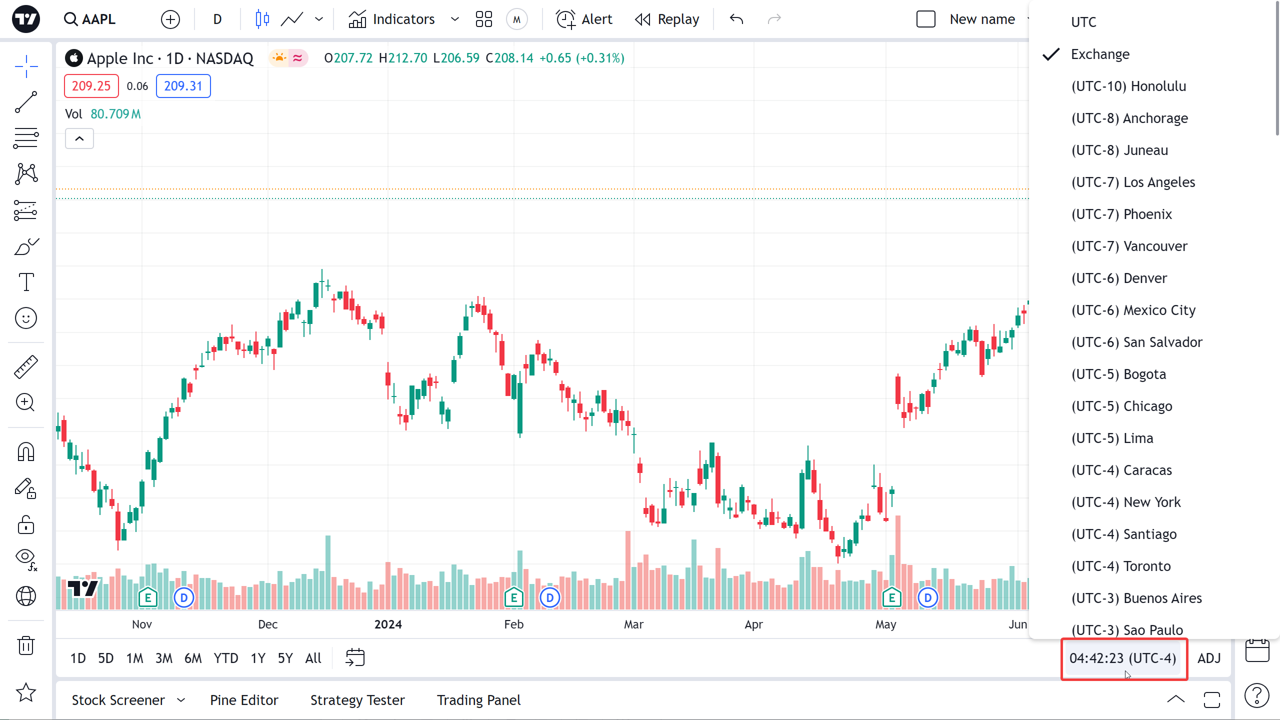 Có cách nào để thay đổi múi giờ biểu đồ hoặc thời gian trên đồng hồ ở dưới cùng của biểu đồ không?
