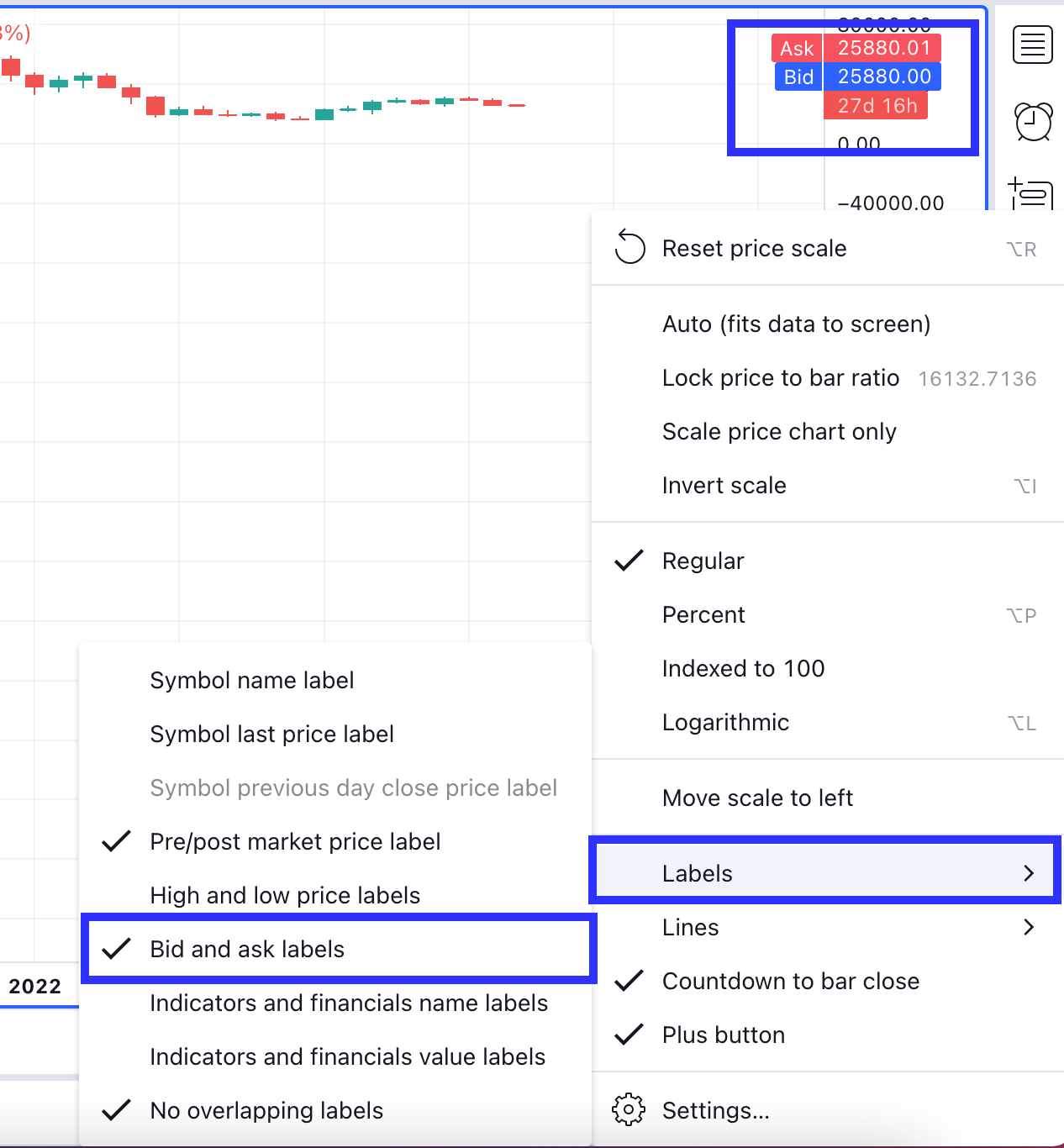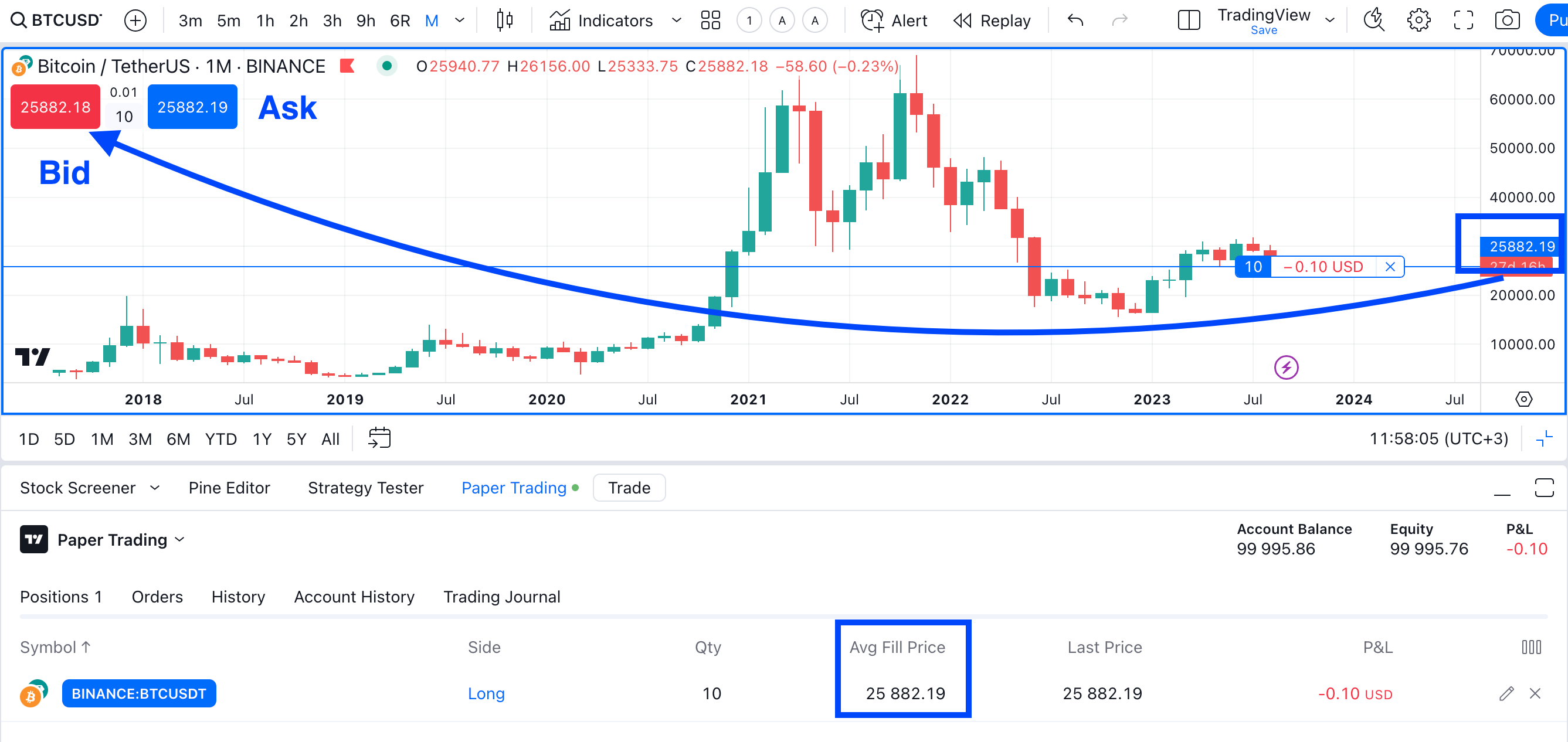 Trong hầu hết các trường hợp, lệnh mua được thực hiện theo giá chào mua, và lệnh bán theo giá chào bán. Giá cuối cùng trên biểu đồ không ảnh hưởng đến phép tính. Chúng được hiển thị trong bảng lệnh và trên các nút "Mua" và "Bán" ở góc trên bên trái.