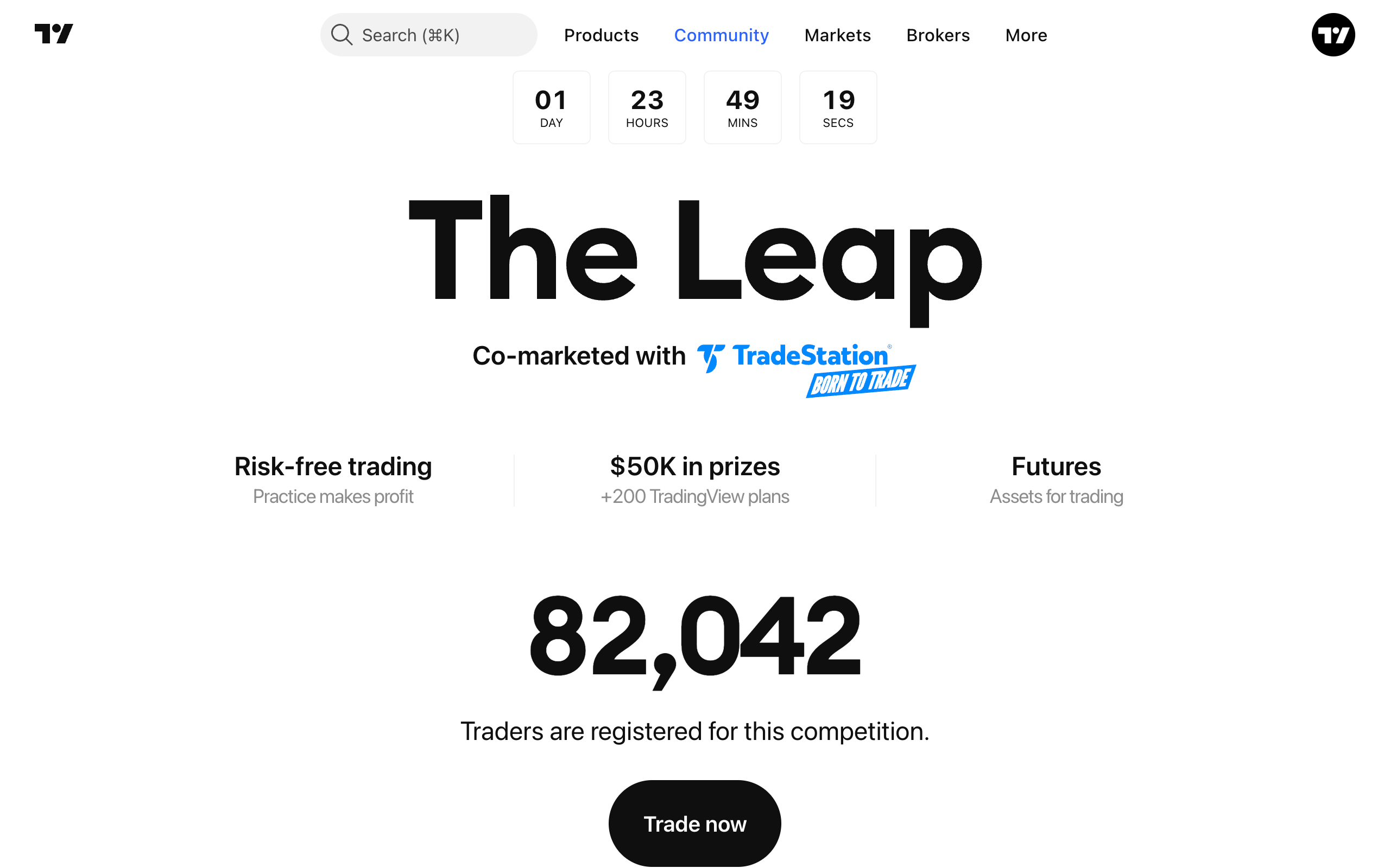 Để tham gia cuộc thi, bạn cần tạo tài khoản TradingView. Tiếp theo, hãy truy cập trang Cuộc thi The Leap và nhấp vào nút "Tham gia cuộc thi".