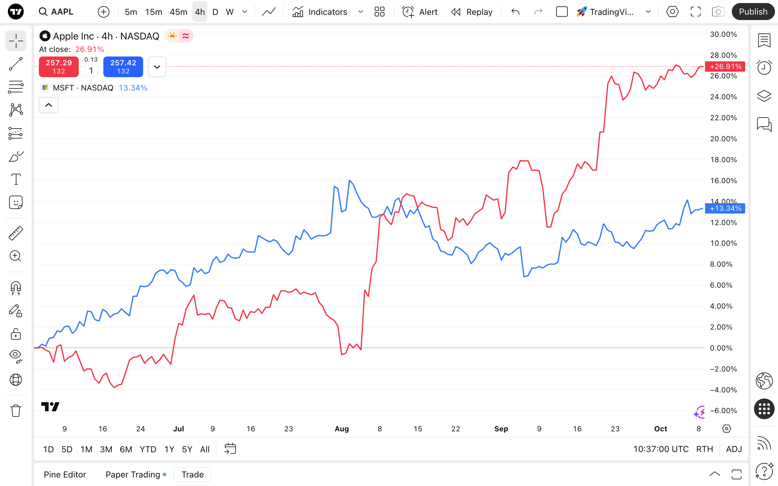 Supercharts là trái tim của TradingView. Với chúng, bạn có thể theo dõi biến động giá, xem các chỉ báo, vẽ và phân tích biểu đồ, đồng thời truy cập các công cụ khác như Công cụ Sàng lọc cổ phiếu (Screener) và dòng tin tài chính (News Flow) để có góc nhìn toàn diện hơn. Từ không gian giao dịch cá nhân của bạn, bạn còn có thể luyện tập giao dịch hoặc thực hiện lệnh thật thông qua các nhà môi giới đáng tin cậy được liên kết với TradingView.