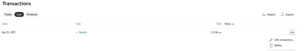 Bạn có thể chỉnh sửa hoặc xóa cả các giao dịch riêng lẻ và tất cả các giao dịch cho một công cụ cụ thể.