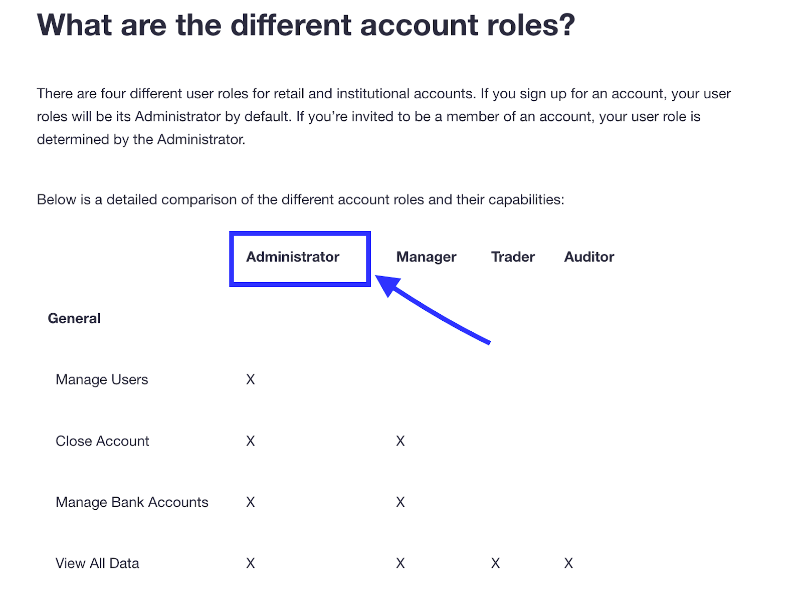 Gemini hỗ trợ nhiều vai trò tài khoản khác nhau. Để biết thêm chi tiết về các vai trò, vui lòng truy cập đường dẫn hướng dẫn. Để có thể truy cập tài khoản trên TradingView, bạn cần đặt vai trò của mình là “Quản trị viên”.