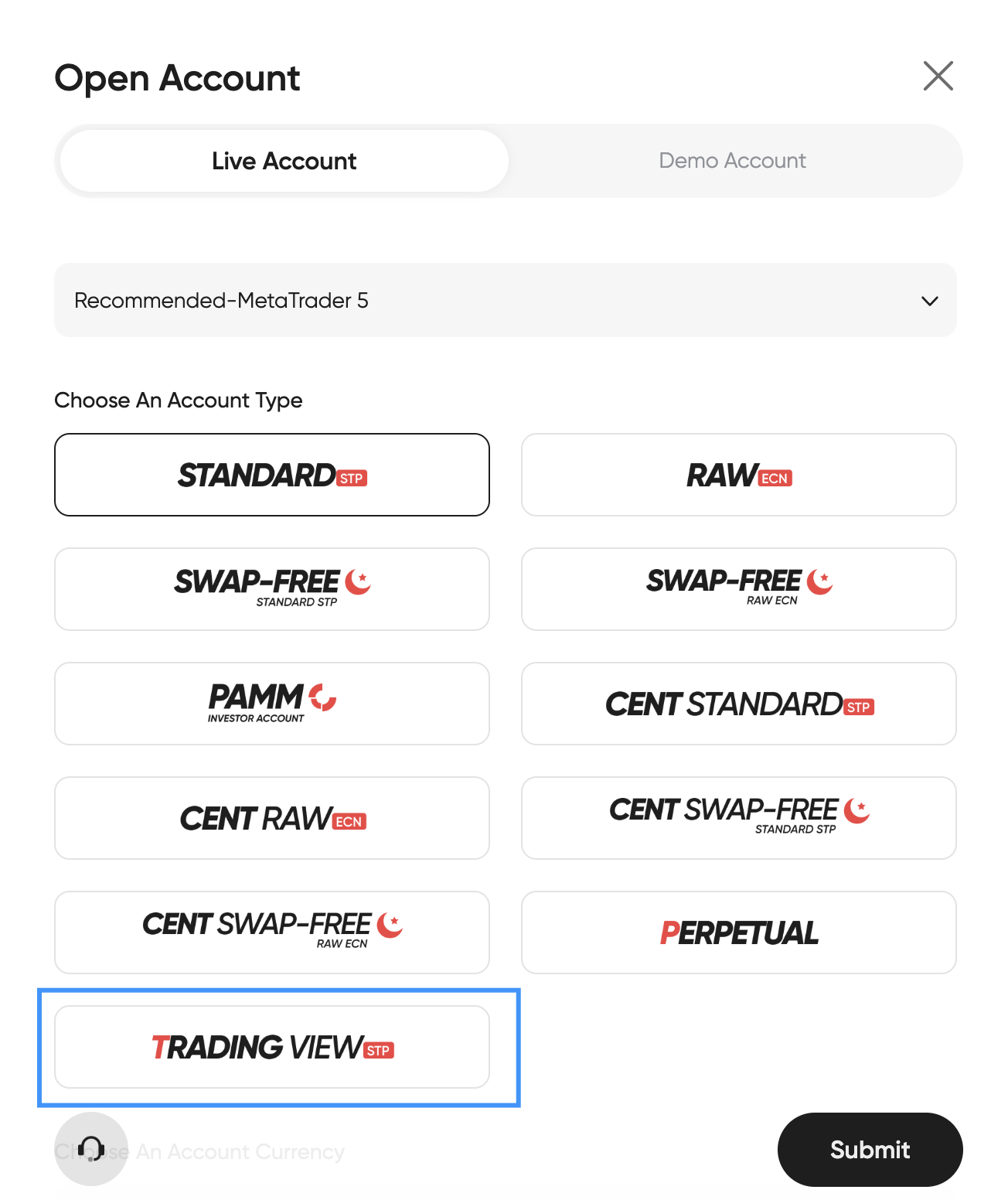 Tôi gặp lỗi "Không có sẵn tài khoản giao dịch (TradingView)" trên Vantage
